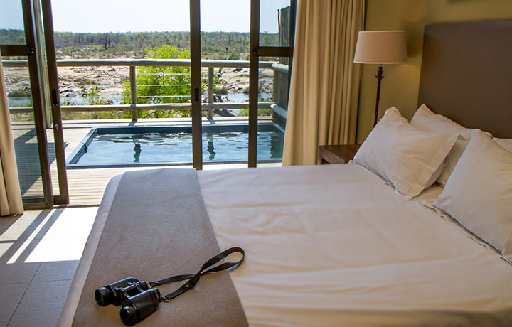 On the banks of the crocodile river, enjoy the views of the wildlife roaming to have a drink, and feast your eyes on the magnificence of the big 5 just outside your door.